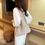 2. Spacious and Practical Dimensions: Measuring 380.00×250.00×20.00mm (14.96×9.84×0.79 inches), this knitted tote bag easily accommodates essentials like your phone, headphones, umbrella, and wallet. It’s perfect for daily commutes and travel, offering ample space for all your necessities.